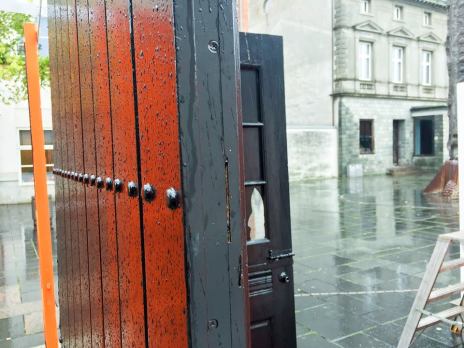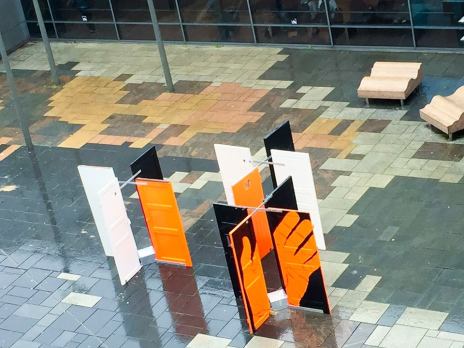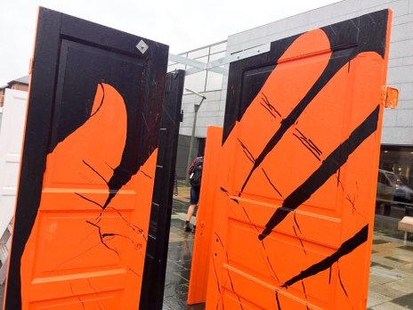 Medlemmer fra Grafisk Værksted Vejle skabte 3x4 døre til opstilling på Banegårdspladsen. Deltagere: Helle Koch, Susanne Baldus, Birgitte Poulsen, Kurt Ejvind Nielsen og Claus Frederiksen.