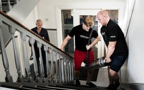 Vejle Amts Folkeblad: Fitness-fyre brugte deres muskelkraft for kunsten... Foto: Mette Munk, Vejle Amts Folkeblad
